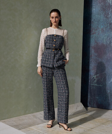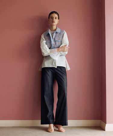 2月は映画『マリー・アントワネット』に心惹かれ、ヴェルサイユ宮殿の敷地内にあるホテルLe Ground Controleに宿泊するイメージから展開。パステルカラーにホワイトを纏わせたような柔らかく優しいカラーリング、レースやフリルに大きなリボン、ビスチェ風のツイードベストなど、クチュールドレスのディテールを今に表現しました。