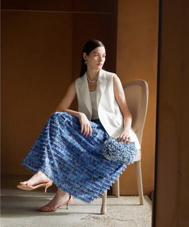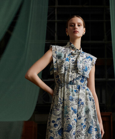 3月は生まれ変わった老舗デパート『LA SAMARITAINE』、フランス国立図書館『BNF Richelleu』の建築や装飾から着想。美しい壁画のイメージをフランスのメーカーに図案からオーダーしたプリント、カットジャガードに羽のプリントを施したスカート、金属箔のブローチなど、アートなモチーフを日常に楽しむアイデアを提案します。