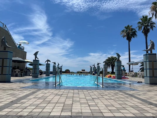 西伊豆クリスタルビューホテル 屋外プールにて、西伊豆町スポーツ教室参加者と一緒に、リカバリートレーニングを実施しました。