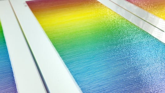 空気の中の光をスペクトルに分解し、可視化するというコンセプトをもとに制作された「wavelengthシリーズ」の48作品が大きな壁一面に展示されます。窓から差し込む光が、作品を通して多様な色に変わり、空間全体が虹色に染まる光景をお楽しみください。