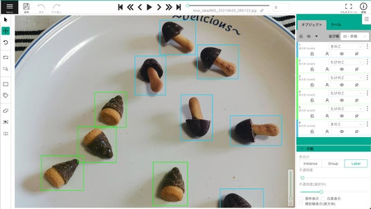 AIに正解を教える「アノテーション」作業をHumanome Eyes上で実施している画面キャプチャ。写真上の「どこ」に「なに」があるかを、ブラウザ上から指定します。