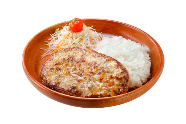 ※チーズバーグディッシュ、レギュラーバーグディッシュ、おろしそバーグディッシュ、フォンデュ風チーズバーグディッシュの写真のハンバーグは300gです。