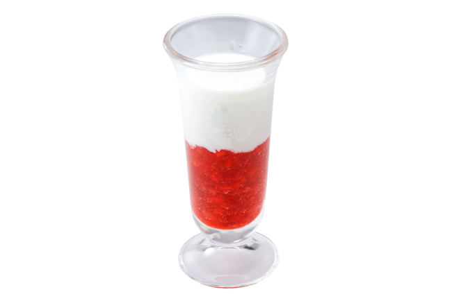 フレッシュな完熟イチゴを原料に、果肉のつぶつぶ食感を残したイチゴソースを使用。牛乳はイチゴソースとの相性を考え、生クリームを加えたオリジナルです。