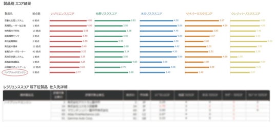 ・リスクスコアリングサマリ(最終製品):最終製品ごとにリスクの多寡を可視化