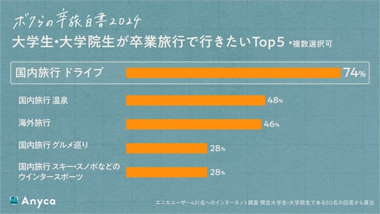 大学生が卒業旅行でもっとも行きたいのはドライブ。海外旅行は3位。