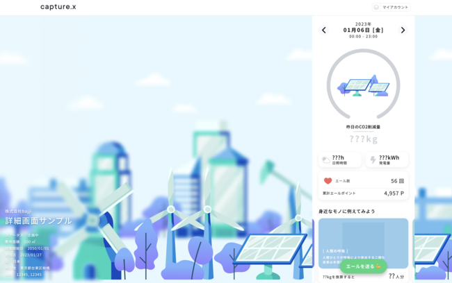 また、現在多くの企業は、環境対策のため様々な活動を進めています。例えば再生可能エネルギーを活用した発電のみで稼働する工場などの取り組みがあります。しかしながら、一般消費者には企業の活動はあまり知られていません。capture.xは、そうした企業の取り組みや自社の活動を継続的にアピールする場となっています。より多くの消費者が企業のファンとなり、企業の活動に注目することが、環境対策活動をさらに推し進めていくことに繋がると考えています。