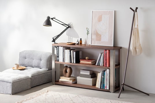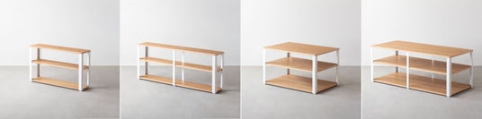 THE TABLEシリーズと同じ高さ*で設計したシンプルなデザインのシェルフです。今年2月に発売し、カスタマイズ可能な天板素材を拡充してまいりました。個人、法人のお客さま問わず幅広い空間で使用いただいております。