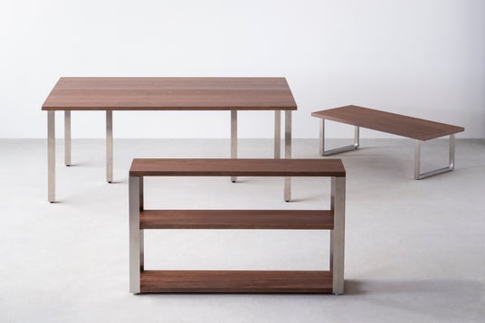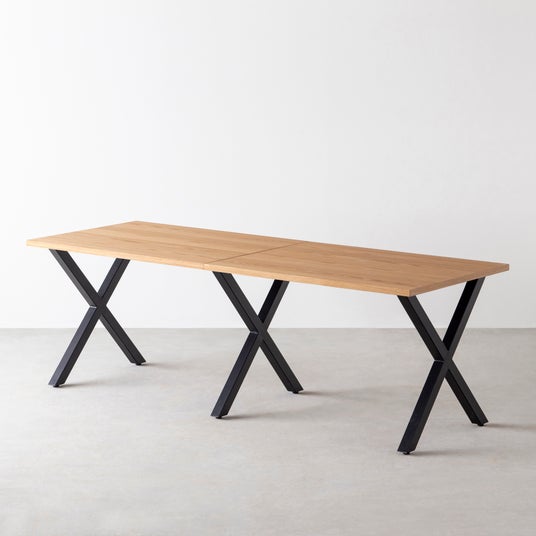 展開樹種はホワイトオーク、ウォルナット、くるみの3種類。天然木の豊かな風合いを、ミニマルな金属脚が引き立て空間にアクセントをプラスします。いずれも無料サイズオーダー可能なシリーズとなります。