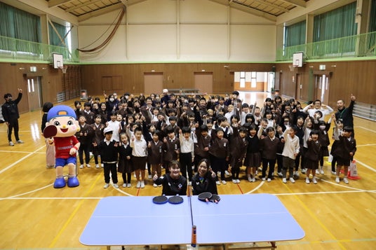 今回、初めてこども卓球台寄贈イベントへ参加させてもらいました。皆さん元気いっぱいでとても楽しかったです。先生との絆も深く見えて、すごく良い雰囲気の小学校だなと思いました!こども卓球台で休み時間などで楽しく遊んでほしいです!貴重な時間をありがとうございました。