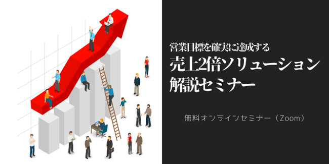 株式会社営業ハックは「売上2倍ソリューション」を解説するセミナーを、2/9(水)15:00~16:00に開催いたします。これまで100社以上の営業コンサルティングや営業支援を行ってきた営業ハックが新たに提唱する「売上2倍ソリューション」その仕組みやそれを実現させるための営業マネジメントの具体的なコツ・考え方などをご紹介します。