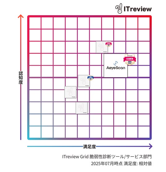 株式会社エーアイセキュリティラボ(https://www.aeyesec.jp/ 東京都千代田区 代表取締役社長:青木 歩)は、アイティクラウド株式会社が運営するビジネス向けIT製品・クラウドサービスのレビュープラットフォーム「ITreview」のアワード「ITreview Grid Award 2025 Summer」において、クラウド型Webアプリケーション脆弱性診断ツール「AeyeScan」が「脆弱性診断ツール/サービス」部門で4期連続「Leader」に選出されたことを発表いたします。