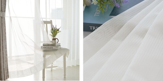 花粉をキャッチし、アレル物質を不活性化する加工を施した繊維を使用。毎日の暮らしを快適にしてくれる、定番機能が揃ったレースカーテン。ほんのり入った縦のウェーブがポイントです。