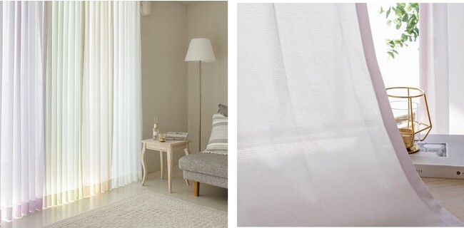 【新着商品】ニュアンスカラーが愛らしい、花粉対策プライバシーレースカーテン<ヘルン>¥3,400~(税込)