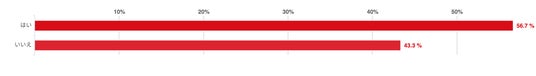 アンケートによれば、継続利用しているユーザーの中で「はい」と答えたのは56.7%、残りの43.3%は「いいえ」と回答している。
