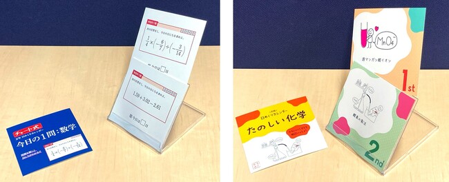 「たのしい化学」「今日の1問:数学」の2種を発売します。くり返し使える万年日めくりカレンダーです。