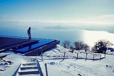 ウィンターシーズンは、京阪神エリアからも好アクセスのスキー場として、スキー・スノーボード、そして雪山観光まで幅広くお楽しみいただけます。冬の「びわ湖テラス」では、幻想的な雪景色が見られます。