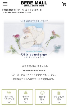 オンラインストアBEBE MALLにて、fillot de bebe reduction(フィヨ・デュ・ベベ・ルダクティオン)のベビーギフト専用ページ『ギフトコンシェルジュ』をスタートいたします。