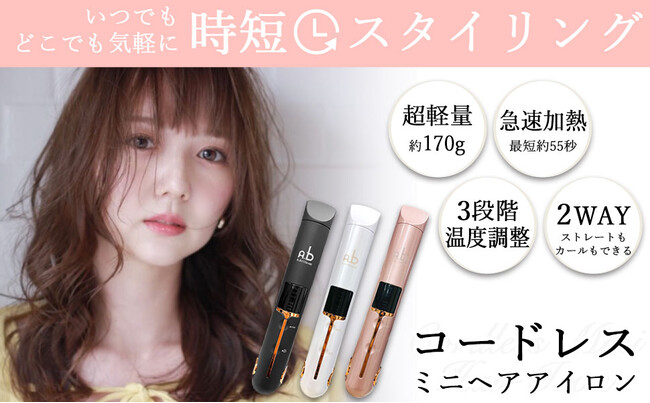 お出掛け時や旅先へ持ち運びしやすい『コードレス ミニ ヘアアイロン』