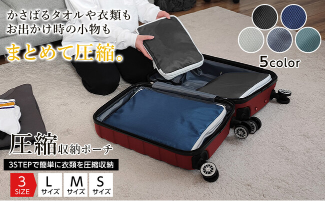 圧縮率約50%以上!日本製『圧縮収納ポーチ』