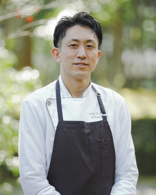 23歳でイタリアに渡り、ミシュラン2つ星のレストランなど各地のトップシェフたちのもと修行し、2015年、新時代の若き才能を発掘する国内最大級の料理人コンペティションで入賞を果たします。2017年からは京都のラグジュアリーホテルのイタリア料理店 料理長として活躍。2020年よりアマン京都の料理長を務め、2023年に総料理長に就任。「美しい自然に囲まれたアマン京都で、地産食材にこだわり、”この場所だからこそ、この料理”というシンプルでありながら奥深い食体験を届けたい」と語ります。