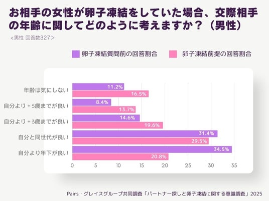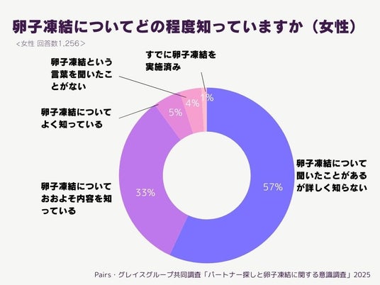 株式会社グレイスグループ(東京都渋谷区、代表取締役CEO 勝見祐幸、以下 グレイスグループ)は、恋活・婚活マッチングアプリ「Pairs(ペアーズ)」を運営する株式会社エウレカ(本社:東京都港区、代表取締役CEO:山本竜馬、以下 ペアーズ)の「パートナー探しと卵子凍結に関する意識調査」を共同で企画し、男女別に集計した結果を2025年4月23日に公開しました。