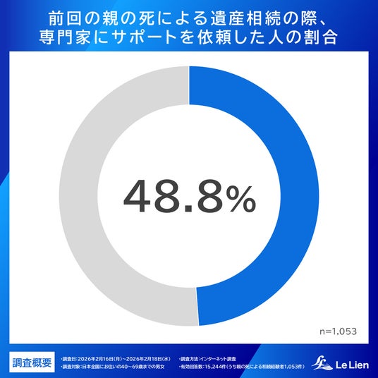 前回の親の死による遺産相続時、専門家にサポートを依頼した人の割合は48.8%と、約半数にのぼります。