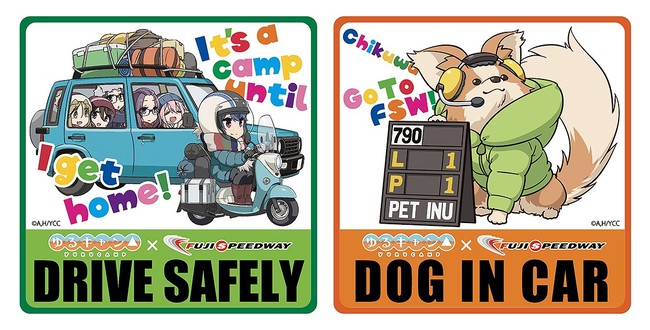 イラストは富士スピードウェイで24時間レースを観戦しながらキャンプを楽しむ『ゆるキャン△』メンバーが描かれます。