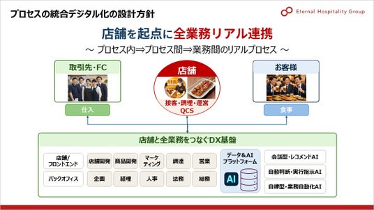 従来のシステム化が「コスト・効率重視のセルフ化」に偏り、外食本来の価値である「おもてなし」を希薄化させてきた一面があると受け止めております。当社は、もう一度、「おもてなし」を取り戻します。ただし、昔に戻るのではなく、『人とデジタル』の融合でそれを実現してまいります。AIを成熟させ、人だけに依存する形から脱却し、高付加価値な経営を目指してまいります。