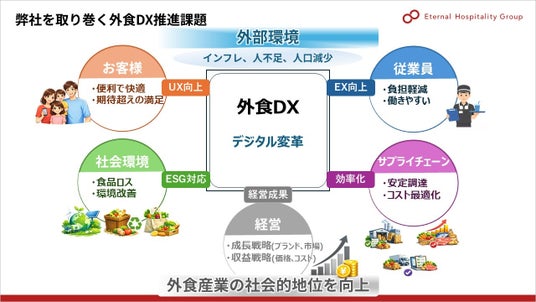 株式会社エターナルホスピタリティグループ(本社:大阪市中央区 代表取締役社長:大倉忠司)は、2026年3月19日、東京都内にて、メディア関係者様向けに「DX戦略説明会」を開催いたしましたのでお知らせいたします。