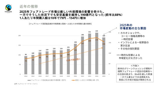 一方で、フェアトレード認証製品の市場規模は約190億円を維持しており、安定した需要基盤の存在が改めて確認されました。