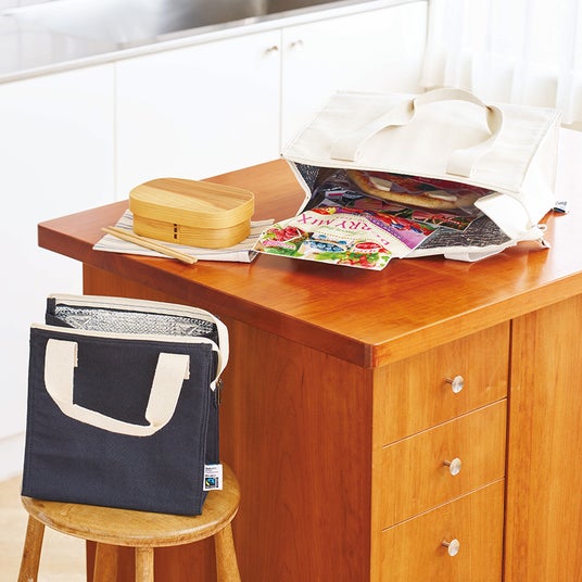 ・フェアトレードコットン スクエア保冷トート(S/M) S:ナチュラル1,430円~ / M:ナチュラル1,870円~(税込)