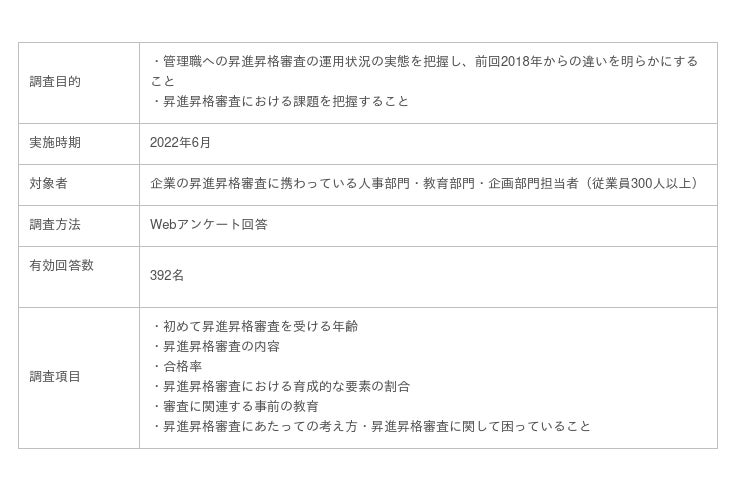本調査の結果より管理職への昇進昇格審査は、4年前よりも“育成しながら適性を見極めて選抜する形”へと変わってきていると考えられます。