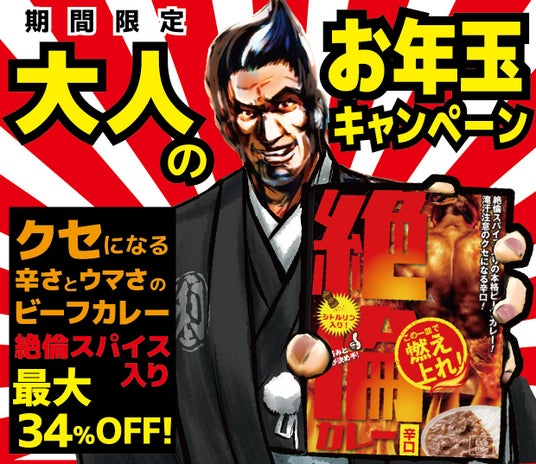- 年末年始のイベントシーズンを盛り上げるユニークなアイテム「絶倫カレー辛口」を最大34%オフで提供