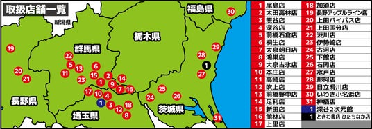 出店エリア:群馬県、埼玉県、栃木県、茨城県、長野県、福島県