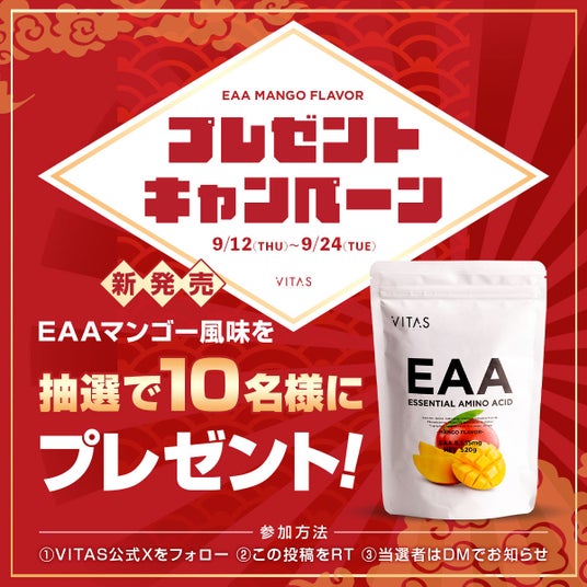 フィットネスブランド「VITAS」を運営する株式会社スリーピース(本社:東京都豊島区、代表取締役社長:高橋達也)は10日、人気商品 EAA の「マンゴー風味」を新たに発売しました。