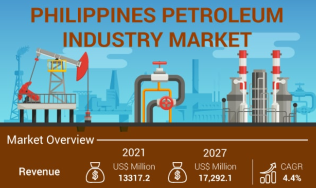 フィリピンの石油市場は、2027 年までに 17,292.1 百万米ドルに達すると予測され ています。予測期間中の年平均成長率は4.4%と予測されています。