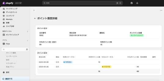 各顧客のポイント利用履歴を詳細に確認できるページを追加。これにより、ポイントの付与・利用状況をより明確に把握できます。