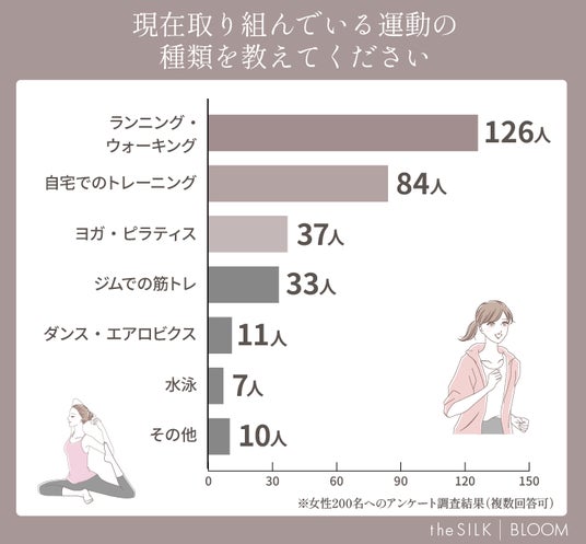 そこで今回は、20代以上の女性200名を対象に「実際に続けている運動」についてアンケート調査を実施。