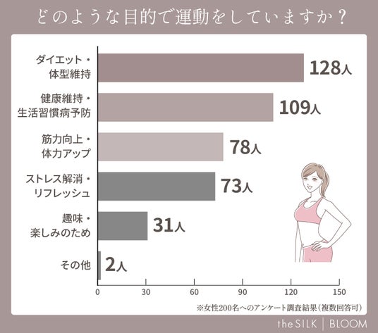 今回の調査では、200名の女性を対象に運動を続ける上での課題についてアンケートを実施。