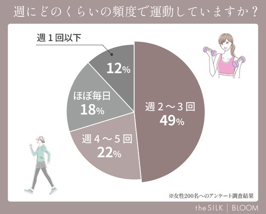 今回の調査の結果、約半数(49%)の女性が「週2~3回」の頻度で運動していることが分かりました。