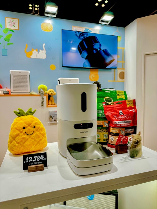 昨年末に発売した「Pawsyncペット自動給餌器」も好評を博しました。この製品は、ペットフードの給餌機能に加え、独自のアプリ「Pawsync」を使った食事管理や健康管理が特徴です。来場者からは「こんなに便利な管理ができるのは驚き」「ペットの健康維持に役立ちそう」といった声が寄せられました。