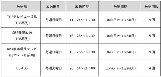 2024年10月6日より、BS-TBS、福島、静岡、熊本エリア4局ネットにて放送