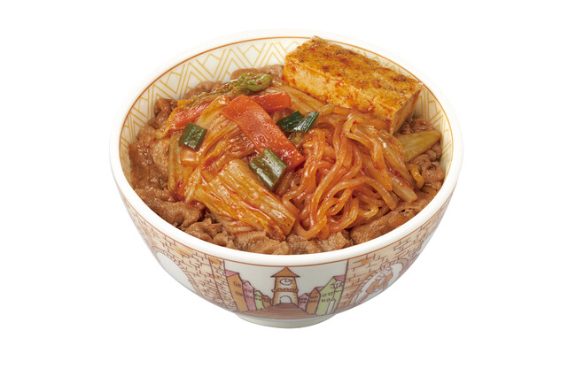 さらに、すきやき牛丼の具材に旨辛ダレを絡めた「旨辛すきやき牛丼」も同時に販売します。にんにくや生姜の旨みと唐辛子のピリッとした辛さが食欲をかき立てます。また、通常より30円お得な「すきやき牛丼 たまごセット」と、「すきやき牛丼 とん汁たまごセット」もご用意しました。