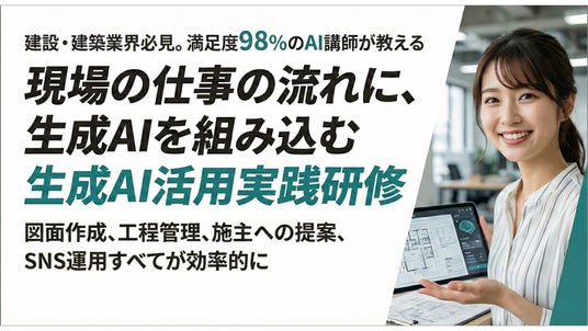 カトルセは、生成AIを導入したものの「現場の業務にどう活かせばいいかわからない」という課題を抱える建築・建設企業向けに、実務直結型の教育プログラム「建築・建設業向け AI実践研修」を3月より提供開始