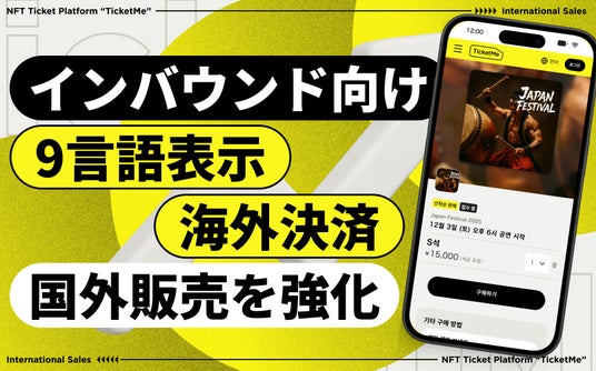 株式会社チケミー(所在地:東京都千代田区 代表取締役:宮下大佑)が提供するNFTチケットプラットフォーム「TicketMe(チケミー)」は、9言語ユーザーインターフェースと195か国超の海外クレジットカード決済に対応。追加開発ゼロで導入できるため、ライブ・舞台・フェスなどのエンタメ事業者が 今日から世界中のファンを取り込める環境を提供します。