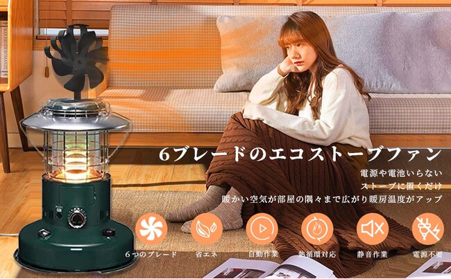 【自動に稼働するエコストーブファン&暖房温度UP】このストーブファンは電池や電気などは要らないです。ファンが回転することで天井付近に滞留しがちな暖かい空気を床面付近に送ることができます。空気の循環が生まれ、暖かい空気が部屋の隅々まで広がり暖房温度がアップ。短時間で暖めることができるので燃料費の節約に繋がります。環境保護にもエコです。