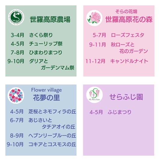 株式会社世羅高原農場(広島県世羅町 代表:吉宗誠也)は、日本有数の花観光農園がある広島県世羅町にて4つの花観光農園を運営しています。1年を通して「花はみんなをしあわせにする」をコンセプトに季節と共に感動の花風景をお届けしています。2024年で創業45周年、花観光開園30年目を迎える世羅高原農場から、新しい感動の花風景と笑顔の花をお届けします。
