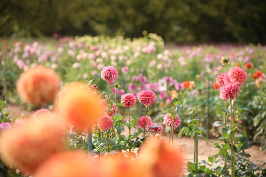 世羅高原農場では現在「ダリアとガーデンマム祭」を開催しています。ダリア・ガーデンマムが見頃を迎えています。お子さまやペットとの撮影にもぴったりな花丈のガーデンマム、咲き並ぶ豪華絢爛なダリアをじっくりとご堪能ください。