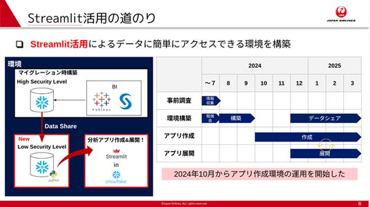 AIデータクラウドを提供するSnowflake合同会社(所在地:東京都中央区、社長執行役員:東條 英俊、以下Snowflake)は5月19日、日本航空株式会社(以下JAL)によるSnowflake Streamlitの活用に関する記者説明会を報道機関向けに開催しました。当日はJALデジタルテクノロジー本部デジタル戦略部 活用推進グループの庄司 稔氏とSnowflake Inc. Streamlit Co-Founder & COO Amanda Kelly(アマンダ・ケリー)が登壇し、JALのSnowflake Streamlitを活用した業務改善の取り組みを説明しました。
