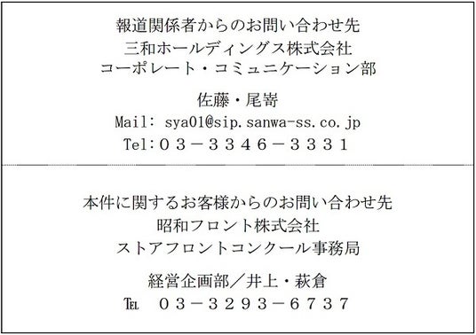三和ホールディングス株式会社(本社:東京都新宿区/社長:高山靖司)の連結子会社である昭和フロント株式会社(本社:東京都千代田区/社長:笹澤英夫)では、「第56回ストアフロントコンクール」を開催し、作品を募集しますのでお知らせします。